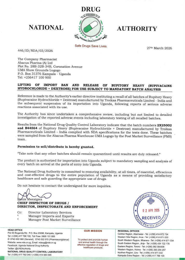 The Association of Anesthesiologists of Uganda (AAU) is aware of the recall of Bupitroy Heavy and Spinesia by the Uganda National Drug Authority.